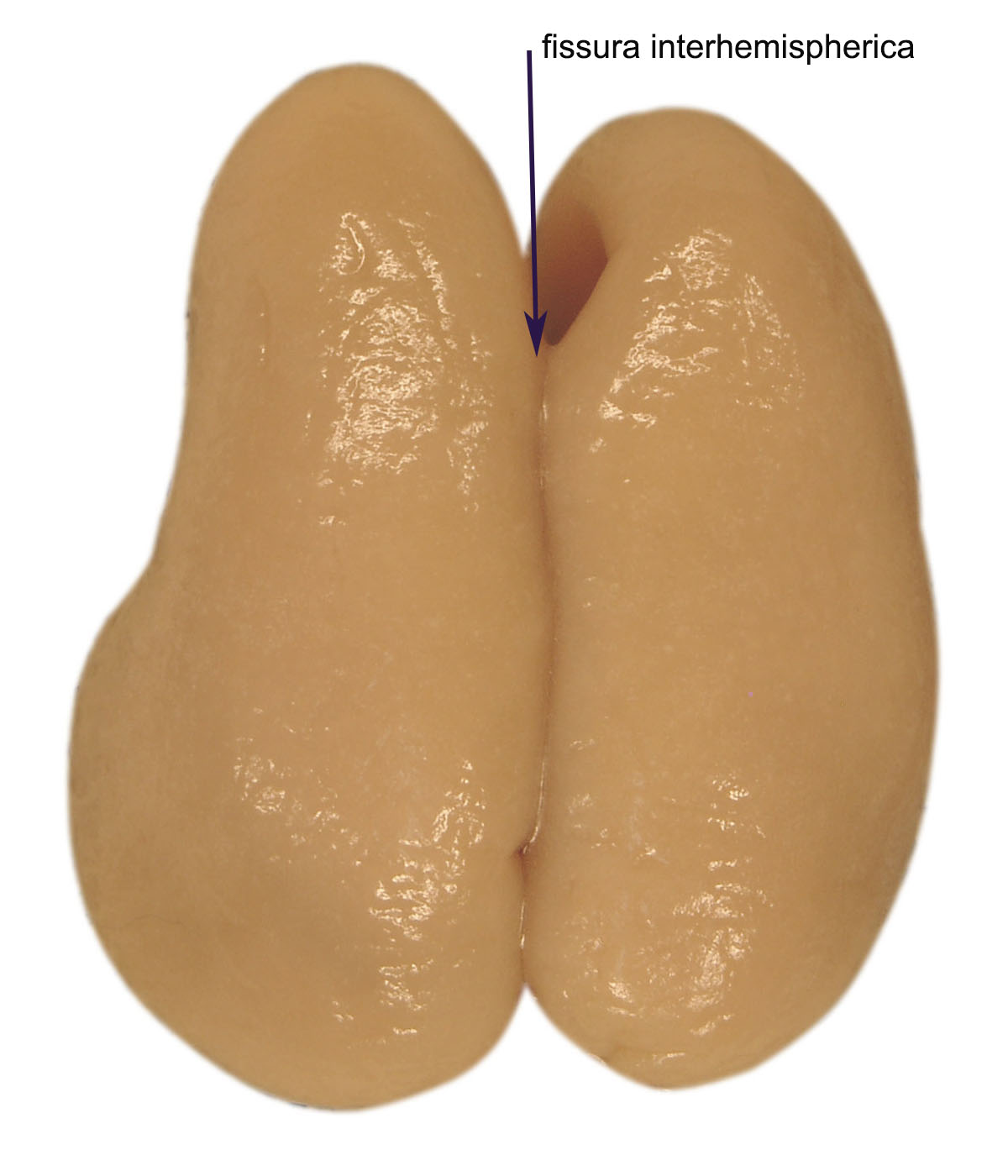 At 16–17 gw, calcarine (Cas) and parietooccipital (Pos) sulci were well defined. At this stage of development, Cas and Pos were folds of the entire hemispheric wall.