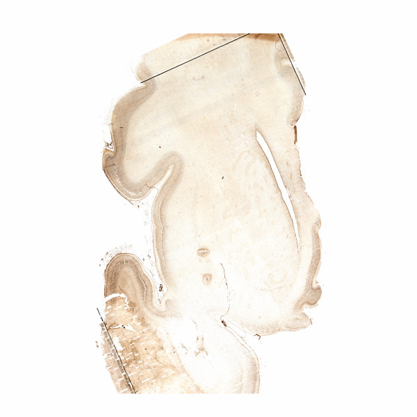 In the occipital lobe, NeuN immunoreactivity predominated in the banks of the sulci and in the lingual gyrus (gyrus lingualis, gyrus occipitotemporalis medialis) . In the gyrus, labeled cells were presented in all cortical plate layers. Inside the sulci, labeling gradually weakened. Near the calcarine sulcus fundus, NeuN-immunopositive cells were preserved in layer VI. Inside the parietooccipital sulcus, immunoreactivity was lower. The NeuN immunoreactivity of the subplate decreased in the late fetal period in both sulci (Godovalova et al., 2024).